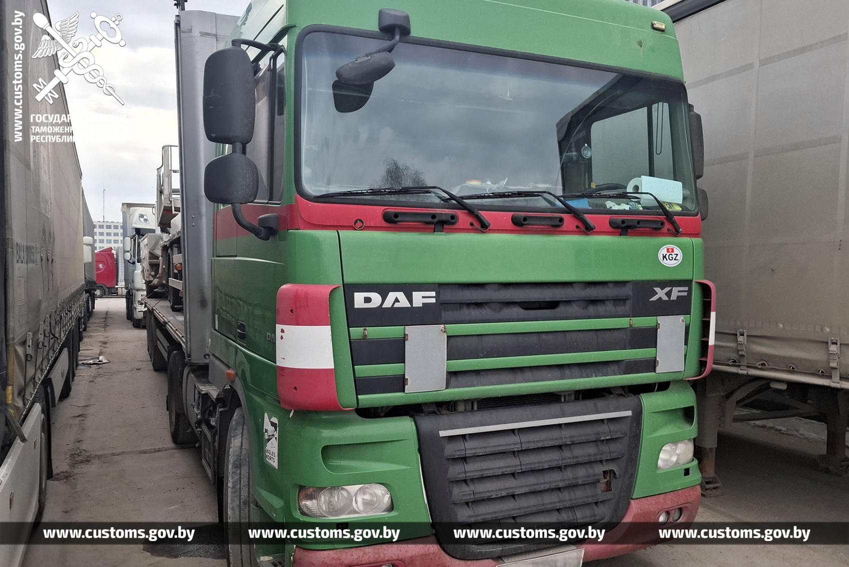 У пункце пропуску «Грыгароўшчына» віцебскія мытнікі ўстанавілі факт незаконнага ўвозу цягача DAF і паўпрычэпа KOGEL пад выглядам транспартных сродкаў ЕАЭС.