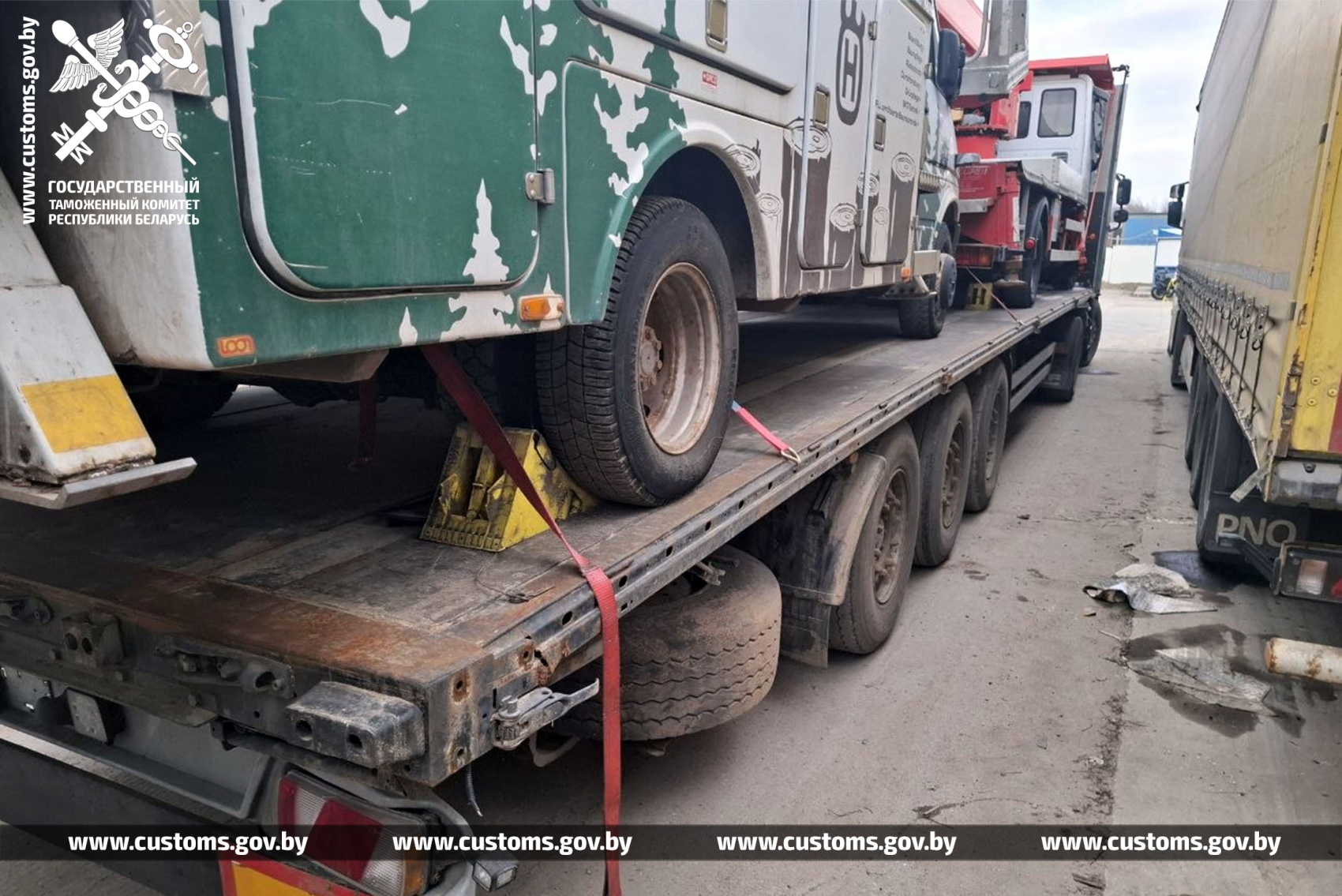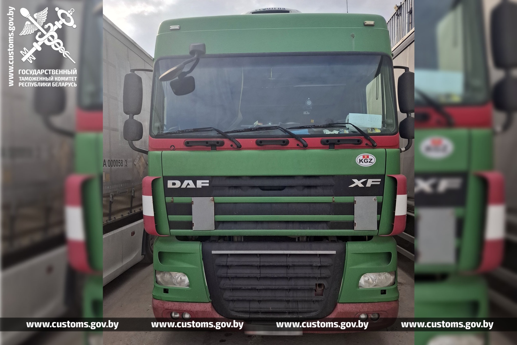 У пункце пропуску «Грыгароўшчына» віцебскія мытнікі ўстанавілі факт незаконнага ўвозу цягача DAF і паўпрычэпа KOGEL пад выглядам транспартных сродкаў ЕАЭС.