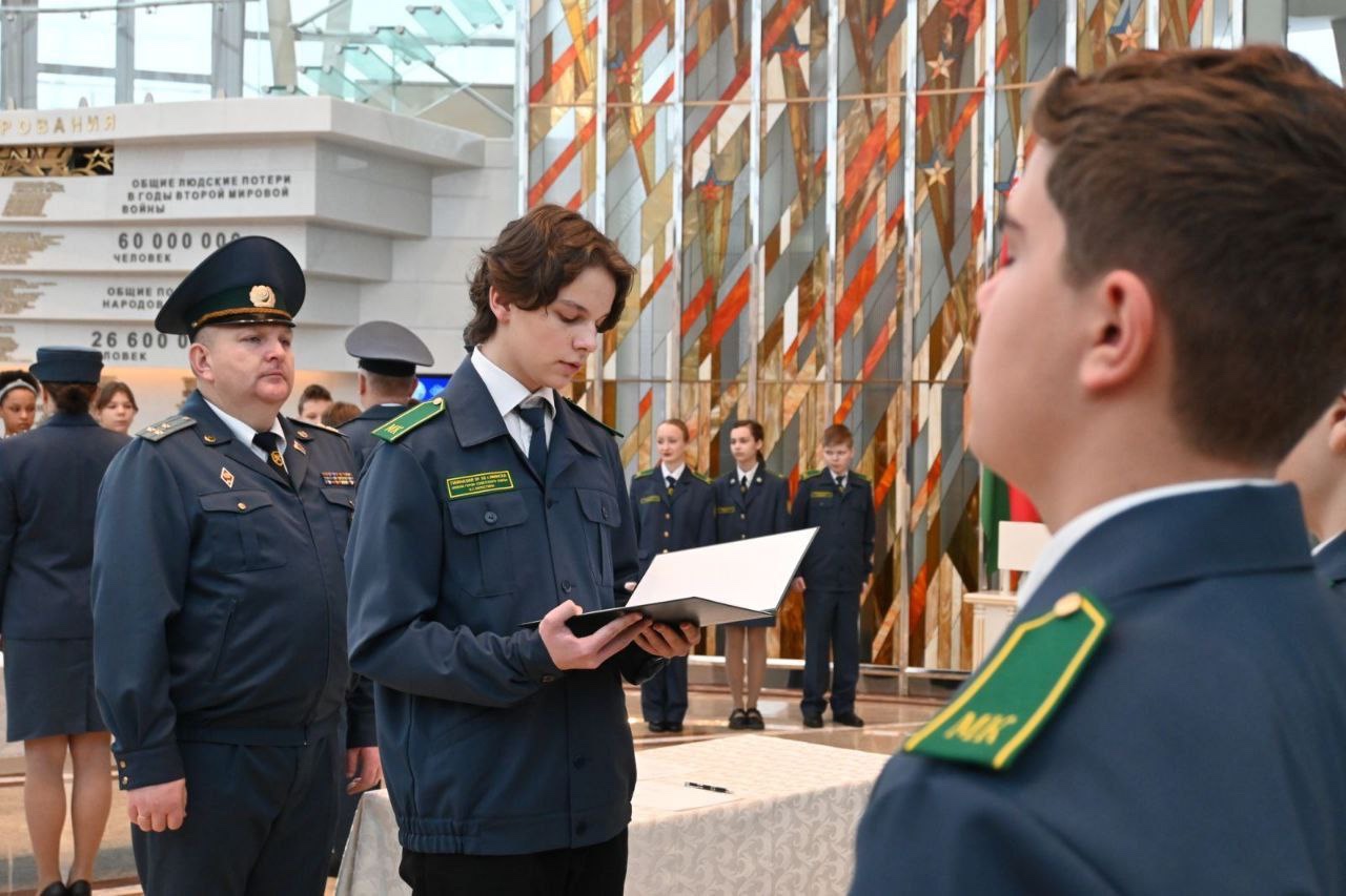 Таможенные органы Республики Беларусь  >Социокультурная деятельность  >Сегодня в музее истории Великой Отечественной войны для минских школьников состоялась торжественная церемония посвящения в учащиеся таможенных классов.