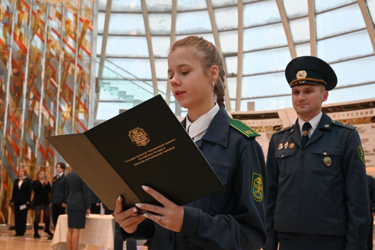 Сегодня в музее истории Великой Отечественной войны для минских школьников состоялась торжественная церемония посвящения в учащиеся таможенных классов.